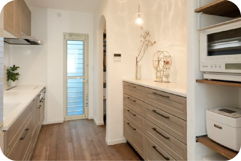 収納や動線、設備など細部までこだわることができるうえ、営業スタッフや職人など経験豊富なスタッフがしっかりサポートします。 -